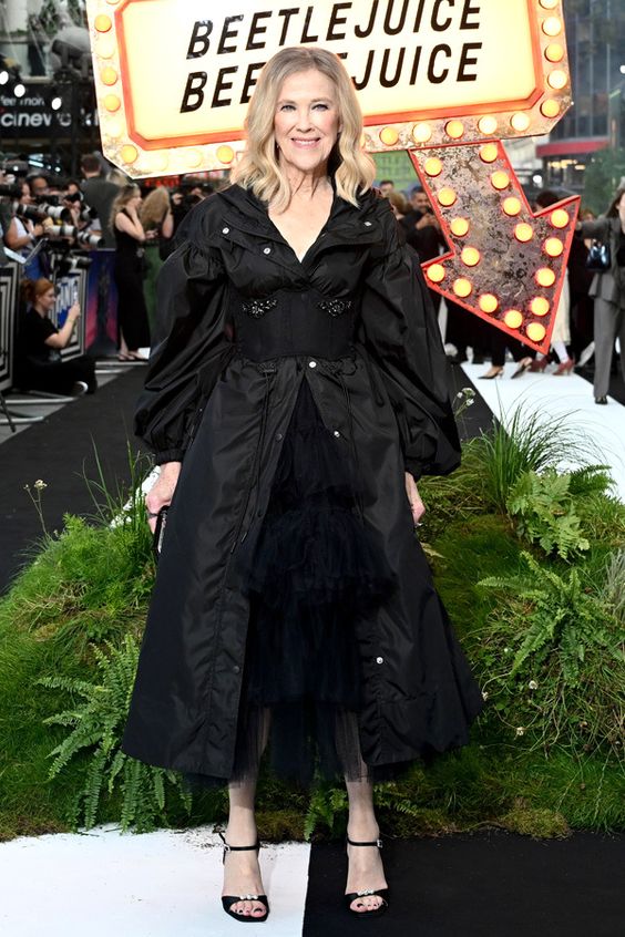 Fashion inspired by the original Beetlejuice film worn by Jenna Ortega, Winona Ryder & Catherine O’Hara during the Beetlejuice Beetlejuice press tour & red carpets.